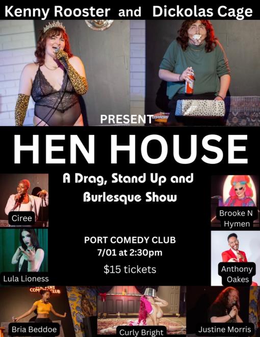 ITS THE SOCIAL EVENT OF THE SEASON! Kenny Rooster and Dickolas Cage are celebrating their birthdays this month…. And what better way to celebrate than with the best show in America?!? Some of the area's best comedians are teaming up with some of the area's best drag performers to bring you THE HEN HOUSE!!!! It’ll be a night full of gags, giggles, twists, turns, death drops, jaw drops, full stops, and most of all… LIFE CHANGING GOOD TIMES!!!! So come on out! Dress to impress- whether that means serving a look or serving “I just got off work get tf out of my face”, and don't forget those dollar bills, baby!!!