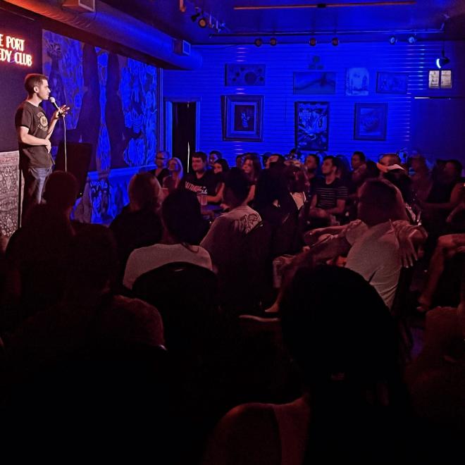 Every Sunday at 7 the port puts on a totally free pro showcase. You have seen these comics at magoobys joke house, the dc improv and more! Door 30 min prior, beer wine and